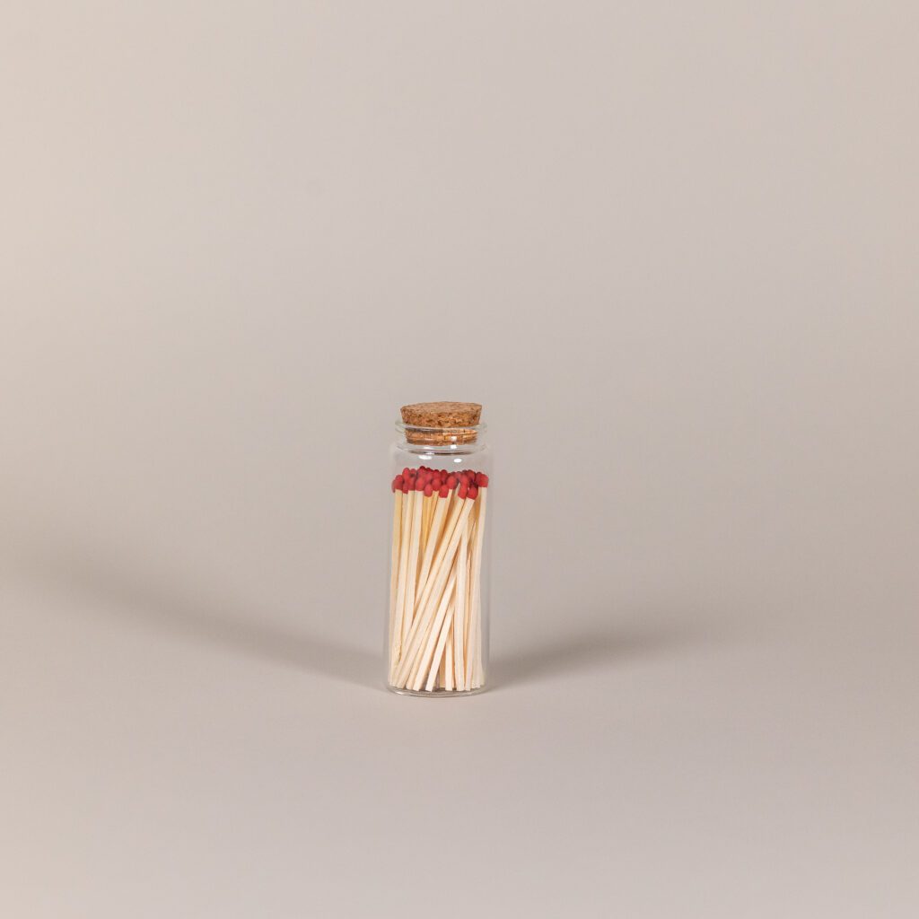 צנצנת זכוכית לגפרורים עם פקק שעם במראה וינטייג'.